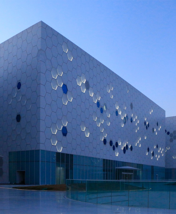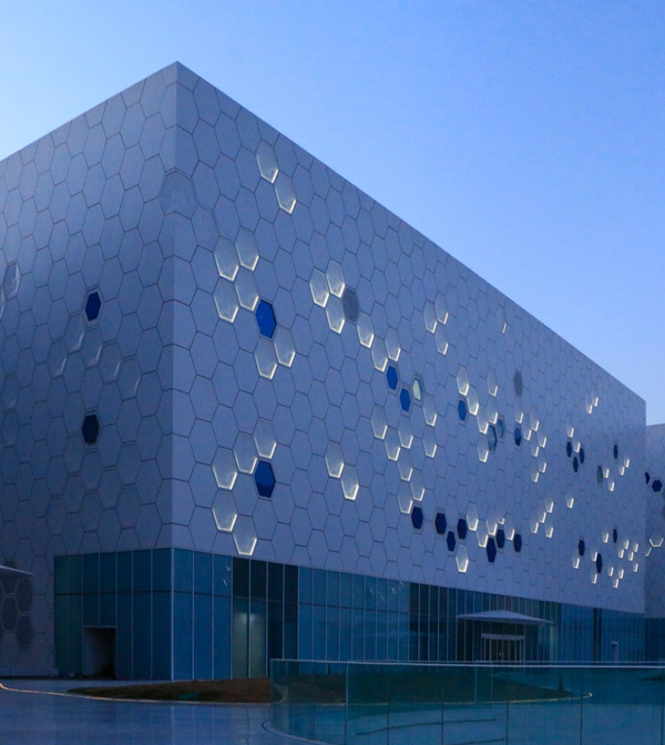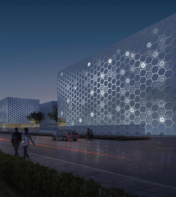 静境——默然生长,融入而不惊光控智慧:通过精准的光照度调节,避免光污染,让灯光与夜色自然相融。材质适配:根据不同建筑饰面的反射比,定制亮度与照度,确保视觉舒适。净境——纯粹光感,出泥不染色温韵律:从2700K暖黄到5200K冷白,动态色温适应四季昼夜变化。光色美学:选用高显色性LED光源,还原建筑材质本色,营造“见光不见灯”的纯净效果。境域——繁衍之界,光影共生布局逻辑:结合厂区“曲廊、金角、银边”结构,通过光域划分强化空间层次。动态叙事:以光形流动模拟自然韵律,如六边形光影的节奏变幻、灯带的光序流转。
